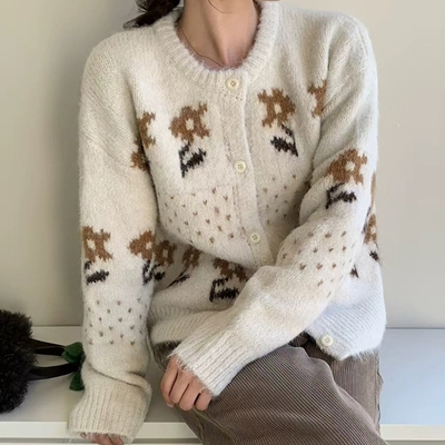 on.[CD523]플라워울가디건