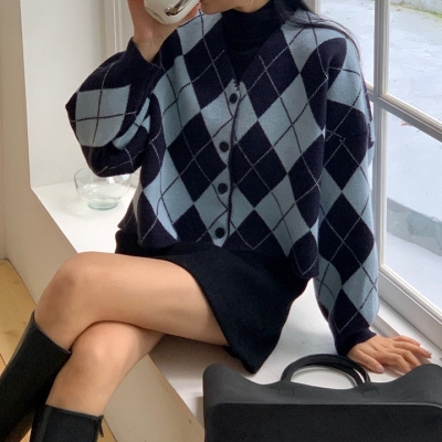 st.크롭아가일가디건