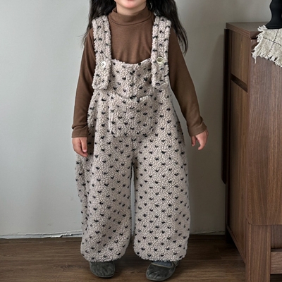 비다이어리.하트양털뽀글이멜빵바지