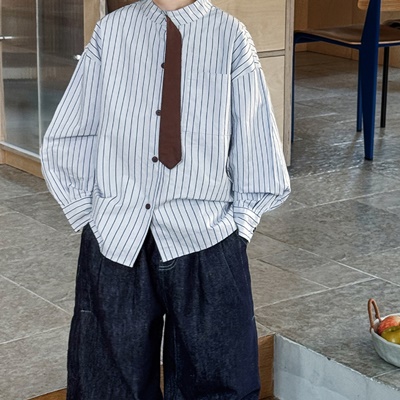비다이어리.브릭넥타이단가라셔츠남방